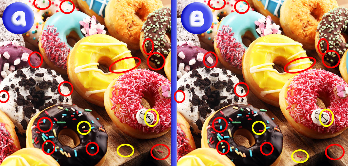 Q 1. Okay, let’s start with an easy one. Can you tell which picture is different without looking too closely at the screen and licking the icing?