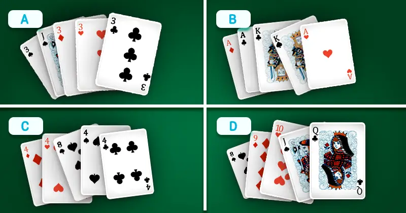 Q 22. Which of these is the strongest hand?